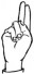 На ћирилици написано ТАНКОСА РАДОСАВЉЕВИЋ састоји се из 19 слова [?]. Исписано ћириличном једноручном азбуком за глувонеме: